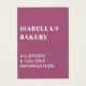Geben Sie Ihren Kunden aktuelle Allergen- und Kalorieninformationen über Ihre Lebensmittel mit diesen individuell anpassbaren rosa Produktkarten. Jede enthält Ihren Firmennamen und einen QR-Code auf der Rückseite, der den Kunden direkt mit Ihrer Allergen/Kalorienwebseite verbindet. Generieren Sie einen brandneuen QR-Code mit der Option "Personalisieren Sie diese Vorlage" auf der Produktseite. Fügen Sie die URL zu Ihrer Allergen-Webseite in das dafür vorgesehene Feld hinzu, und ein brandneuer QR-Code wird auf Ihrem Design erscheinen, der auf Ihre URL verlinkt.