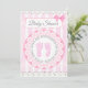 Daisy Themed Girl's Baby Dusche Einladung rosa weiße Spitze und kleine Fußspuren.