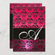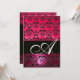 PINK FUCHSIA BLACK DAMASK MONOGRAMM, hell weiß Einladung