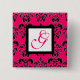 PINK FUCHSIA DAMASK WHITE SQUARE MONOGRAMM BUTTON