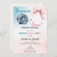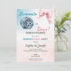 Invitation for a gender reveal party with a tire and pink bow design. Text reads "Burnouts or Bows? Nobody Knows!" Hosted by Sophia and Joseph in Philadelphia.