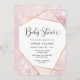 Lassen Sie Ihre Gäste in die Babydusche mit einer schönen rosafarbenen, geometrischen Babydusche einladen, die mit goldenen Akzenten und einem glänzenden, rosa Imitat-Hintergrund besticht.