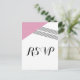 Moderne und trendige geometrische Stripe Wedding RSVP Postcard mit rosa Dreieck und dünn gestreiftem Akzent. Diese einfache, aber elegante Postkarte ist Set bis leicht mit Ihren Hochzeitsinformationen angepasst zu werden. Klicken Sie auf Anpassen, um weitere Anpassungsoptionen zu erhalten.