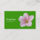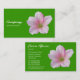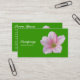Eine Visitenkarte mit einem rosa Geranium Foto Motiv. Firmenname etc auf der Vorderseite mit anderen Details auf der Rückseite mit dem gleichen Motiv und Stil.