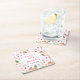 This elegant and festive coaster features a watercolor gingerbread house, gingerbread train, cake stand, cookie jar, hot cocoa, pink poinsettia flowers and Christmas trees. The text combines handwritten script and sans serif fonts for a stylish and modern look. This is perfect for Christmas birthday parties.