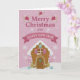 Pink Gingerbread House Merry Christmas Card Karte