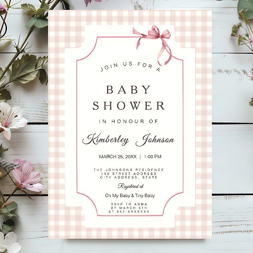 Pink Gingham with Bow Baby ShowerDesignt von Ewa S