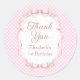 Pink Gingham Bow First Birthday Thank You Sticker