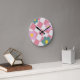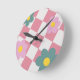Pink Gingham Floral Pattern – Retro Cute Flower Runde Wanduhr