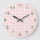 Pink Gingham Große Wanduhr