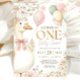 Pink Gingham Silly Goose 1st Birthday Invitation Einladung