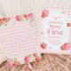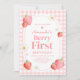 Pink Gingham Strawberry Berry First Birthday Party Einladung