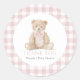 Pink Gingham Teddy Bear Baby Shower Runder Aufkleber