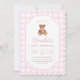 Pink Gingham Teddy Bear Beary First Birthday Einladung