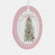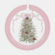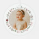 Celebrate a milestone you’ll treasure forever with this sweet Baby’s First Christmas Ornament. Designed with a soft pink border and delicate watercolor details, one side features a festive Christmas tree topped with a ribbon bow and personalized with your baby’s name and year. The reverse side showcases your favorite photo, framed with matching ornaments, greenery, and bows. Capture the magic of your little one’s first holiday season with a personalized ornament that will sparkle on your tree year after year.