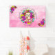 Ein hübsches kleines, von der Hand gezeichnetes Cartoon-Mädchen, umgeben von Blume und einem rosa Hintergrund. Passen Sie Ihre Baby Dusche BANNER in der personalisierten Bereich, indem Sie Mama zu sein oder den Namen des Babys.
