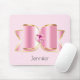 Mousepad mit glänzend glänzender Schleife mit goldener Kontur und einem facettierten rosa Edelstein in der Mitte. Der luxuriöse Stil der Zimmer.