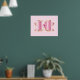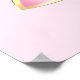 Ein Poster mit einem glitzernden glänzenden Bogen mit goldener Kontur und einem facettierten rosa Edelstein in der Mitte. Die luxuriöse Glasur von Feminine.