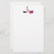 Papier aus Stationierung im Glam-Stil. Heiß rosa Lippenstift und Nagellack. Die Nagellackflasche ist offen und liegt auf der Seite, und die Nagellack-Tropfen kommen raus.