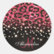Pink Glitzer Leopard Print und Diamonds Runder Aufkleber