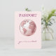 Pink Globe Passport Travel Baby Shower Dankeskarte