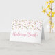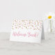 Herzlich willkommen auf der Rückenkarte mit goldenen und rosa Konfetti-Mustern. Perfekt, um Mitarbeiter wieder zur Arbeit zu empfangen.
