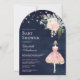 Pink Gold Floral Ballerina Arch Navy Baby Dusche Einladung