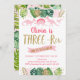 Diese bezaubernde Geburtstagsveranstaltung bietet tropische Aquarellfarben-Blätter mit Glitzer-Blattverzierungen und rosa Dinosauriern.