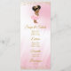 Prinzessin-Babydusche-Menü mit einem anmutigen, afrikanisch-amerikanischen Mädchen, das ein niedlich rosa Outfit und Perlenschnur auf elegantem rosa und goldfarbenem Hintergrund trägt. Diese niedlichen Princess Babyduschmenüs sind einfach an Ihre Veranstaltung angepasst, indem Sie einfach Ihre Details im Schriftart-Stil und Layout Ihrer Wahl hinzufügen.