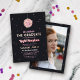 Feiern Sie den Absolventen mit einer Disko-Abschlussfeier und laden Sie Ihre Gäste mit dieser Disco-Ball-Thema-Abschlussfeier mit winzigen Sternen und Fackeln und einer Disco-Ball in Rosa, lila und Gold-Folie mit dem Namen des Absolventen in einem rosa Retro-Skript ein. Freude und Retro Graduation Party Einladung mit einer mädchenhaften Disco-Ball und Retro-Schriftart mit rosa und goldene Folie als Akzent Farbe. Fügen Sie ein Foto des Absolventen auf die Rückseite!