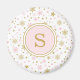 Niedlicher Wintermagnet mit Schneeflocken in Rosa und Gold, Imitaten Glitzer Stars und Konfetti Sprinklen. Personalisieren Sie den Magneten mit Ihrem Initial - ideal für Gastgeschenke!