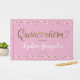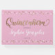 Personalisieren Sie die Details dieses rosa, weiß und gold, elegant und modern quinceanera Gästebuch. Mit rosa und weiß konfetti und goldenes Drehbuch für die "Quinceanera". Passen Sie den Namen und das Datum des 15. Geburtstags an.