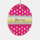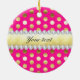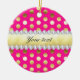 Trendy, bezauberndes, modernes, weibliches personalisiertes glänzendes Imitatgoldfolien-Polka-Punktmuster auf einem funky Hintergrund des heißen Rosas mit Imitatdiamanten. MERKEN SIE BITTE: Diese sind Ebene Druckgraphiken - nicht wirkliche Folie, Juwelen oder angehobene Teile.