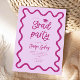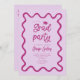Funky Graduation Party Einladungskarte mit handgezeichnetem, schnörkelhaftem und gewelltem Rahmen. Rosa Hintergrund.