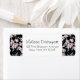 Rücksendeadressen-Aufkleber mit elegantem Muster, die mit einer Aquarellabbilderung von rosa Blume mit blau-grauen Blätter und Stielen versehen sind. Klassischer schwarzer Hintergrund.