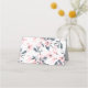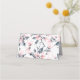 Gefaltene Platzkarte mit elegantem Muster, die mit einer Aquarellbilderin von rosa Blume mit blauen grauen Blätter und Stielen versehen ist.