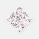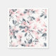 Hochzeitsnapkins mit elegantem Muster, das mit einer Aquarellbilderung von rosa Blume mit blau-grauen Blätter und Stielen versehen ist.