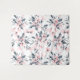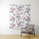 Tapestry mit elegantem Muster, das mit einer Aquarellbilderung von rosa Blume mit blauen grauen Blätter und Stielen versehen ist.