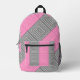 Pink & Gray Backpack With Abstract Squares Stripes Bedruckter Rucksack