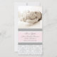 Neue Baby Girl-Geburtsankündigung benutzerdefinierte Fotokarten in bezauberndem und elegantem hellpastellfarbenem Rosa , grau-weiß klassisches Blumenstaubmuster, vollständig anpassbar mit Foto und Geburtsdetails Ihres Babys, eine großartige Möglichkeit, die glückliche Nachricht von der Geburt Ihrer Tochter mit Freunden und Familie zu teilen.
