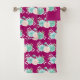 Pink & Green Blumenstrauß auf Magenta Muster Badhandtuch Set