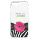 Schick und trendig schwarz, weiß, pink, grün zebra und gerbera daisy (gerber daisy) anpassbare iPhone 6 Gehäuse. Freuen Sie sich auf ein Schwarz-Weiß-Zebradesign und eine hübsche, heiß rosa, gerber-dunkle Blume. Dieses mädchenhafte Design macht ihr ein großartiges Geschenk. Personalisieren Sie es mit Ihrem Vor- und Nachnamen.