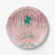 Pink|Green Elegante Glitzer Tropfen Derby Baby Dus Pappteller