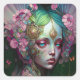 Pink Green Elf Fairy Woman Fantasy Art Quadratischer Aufkleber