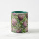 Es handelt sich um ein farbenfrohes Aquarellmuster aus exotischen rosa Protea-Blume mit grünen Stielen und Blätter auf hellbeigem Hintergrund.
