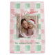 Ein rosafarbener und hellgrüner Gingham oder eine kontrollierte Aquarellgrenze machen diese Foto Geschenktasche hübsch für den Urlaub. Die Saisonfarben, die Sie gelassen haben, dass es Weihnachten ist. "Frohe Weihnachten". Stellen Sie sicher, dass Sie den Familiennamen und auch das Datum ändern.