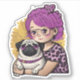 Pink Hair Girl umarmt einen Mops Aufkleber