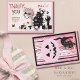 Schicken Sie Ihren Gästen mit dieser bezaubernden, zweiseitigen Babyduschkarte ein herzliches Dankeschön. Die Vorderseite ist mit einer charmanten Spuk Hausszene und einer spielerischen "Danke"-Nachricht versehen, während die Rückseite mit einem individuell anpassbaren rosa Kürbis und einer freundlichen schwarzen Katze ausgestattet ist. Es ist eine perfekte Art, Ihre Wertschätzung zu zeigen und ist ein toller Sake vom besonderen Tag an.