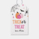 Trick oder Treat Pink Halloween spooktacular Mädchen Geburtstagsgeschenk Tags mit rosa Kürbis, Spinnennetz und Sternen.