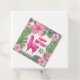 Dieses niedliche und ansprechende Pink Happy Lama, umgeben von grünen Palmen und tropischen Blume, ist von einem hübschen Lama umgeben.
